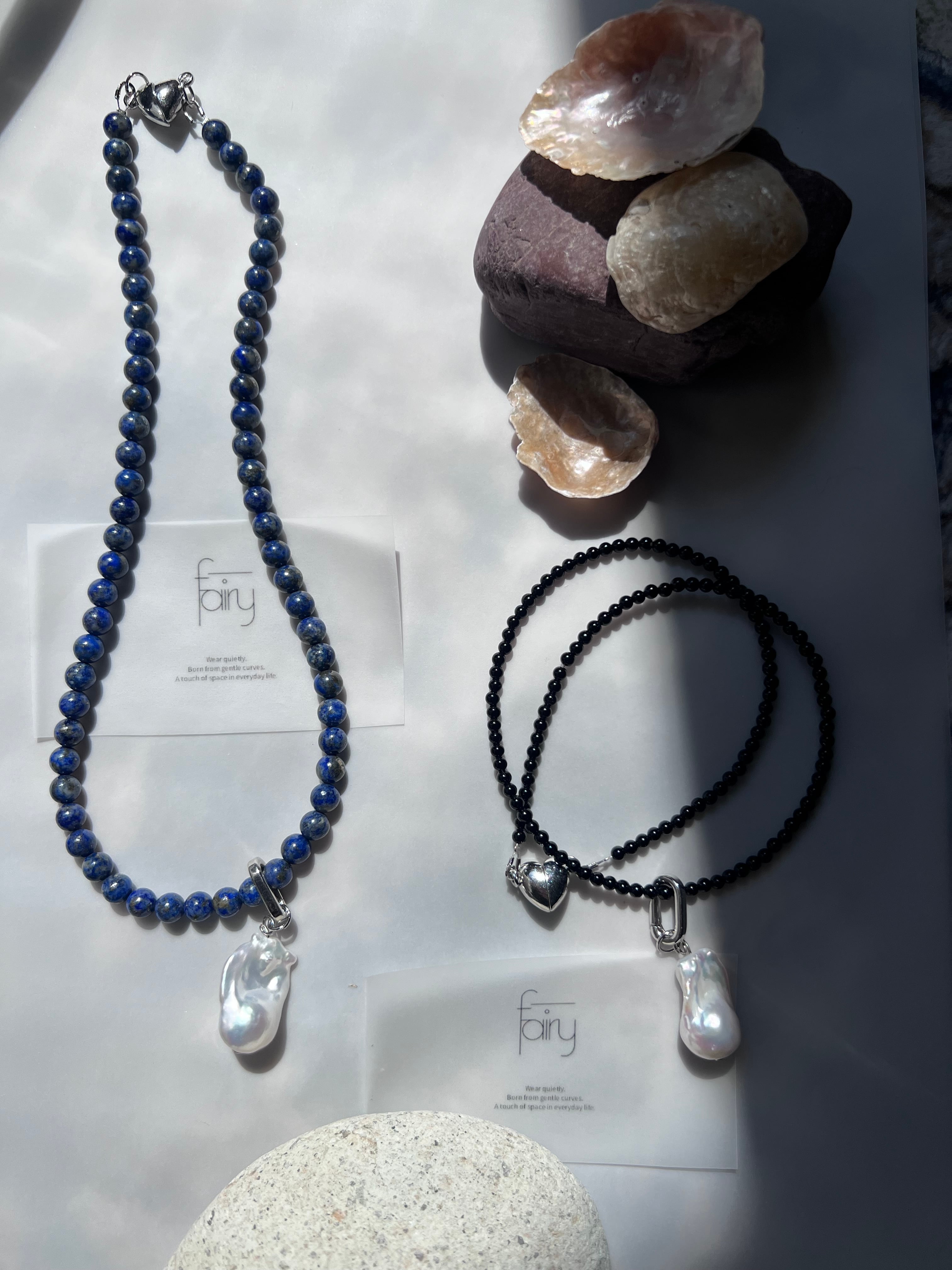 深い青が印象的なラピスラズリのネックレス。