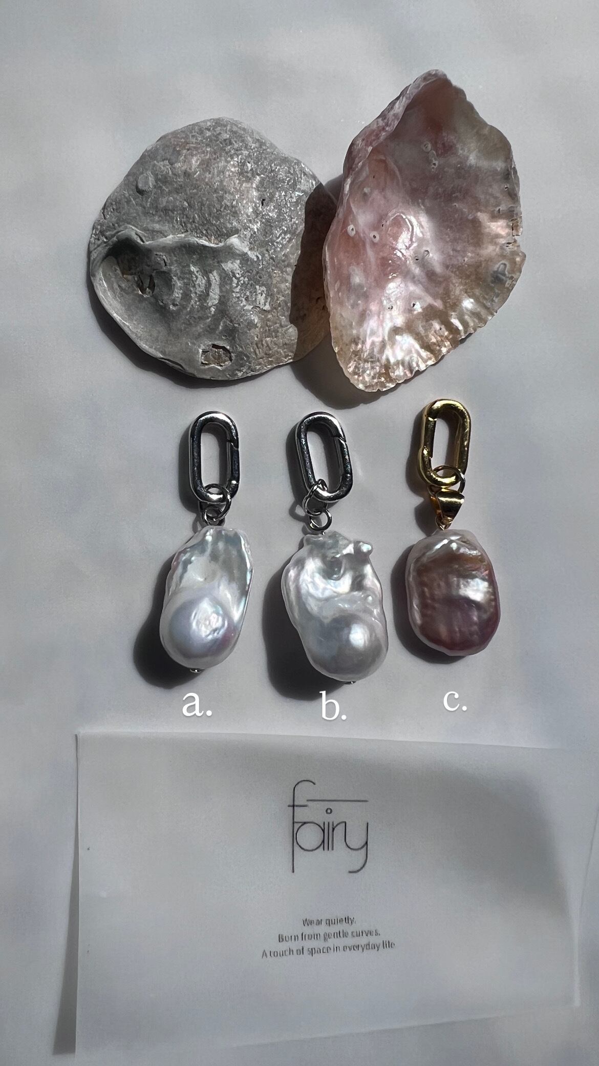 自然な形が魅力のバロックオイスターパール、2〜2.5cmのチャーム。